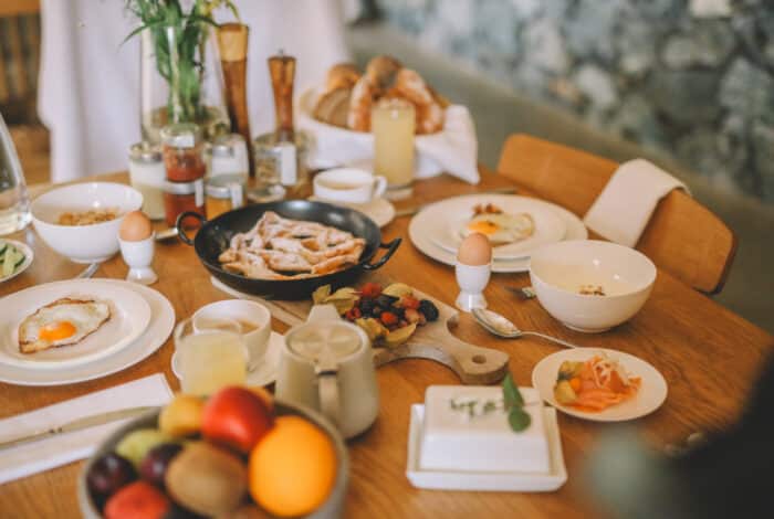 Der Tag beginnt mit einem umfangreichen Frühstück – direkt in die Ferienhäuser geliefert.